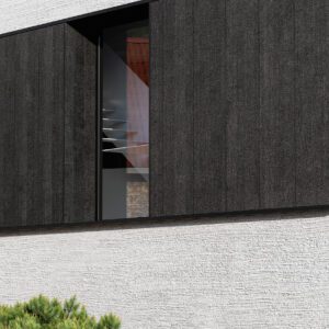 TDie ENNOBLED Deep Charred® Technologie basiert auf der traditionellen japanischen Methode Yakisugi – dem tiefen Abflammen von Holz. Bei Temperaturen um 900 °C entsteht eine verkohlte Schicht mit einer Dicke von 2–3 mm. Diese bildet eine natürliche Schutzbarriere gegen Feuchtigkeit und verlängert die Lebensdauer des Materials erheblich. Anschließend wird die Oberfläche mit einem speziellen Öl behandelt, das für langfristigen Schutz sorgt und zugleich die Farbtiefe betont. Das Ergebnis ist eine Oberfläche mit stark plastischer, dreidimensionaler Wirkung und einem unverwechselbaren ästhetischen Charakter, der jedem Bauwerk Individualität verleiht. Mit der Zeit verändert sich die Oberfläche und entwickelt – abhängig von der Exposition – charakteristische graue Nuancen.